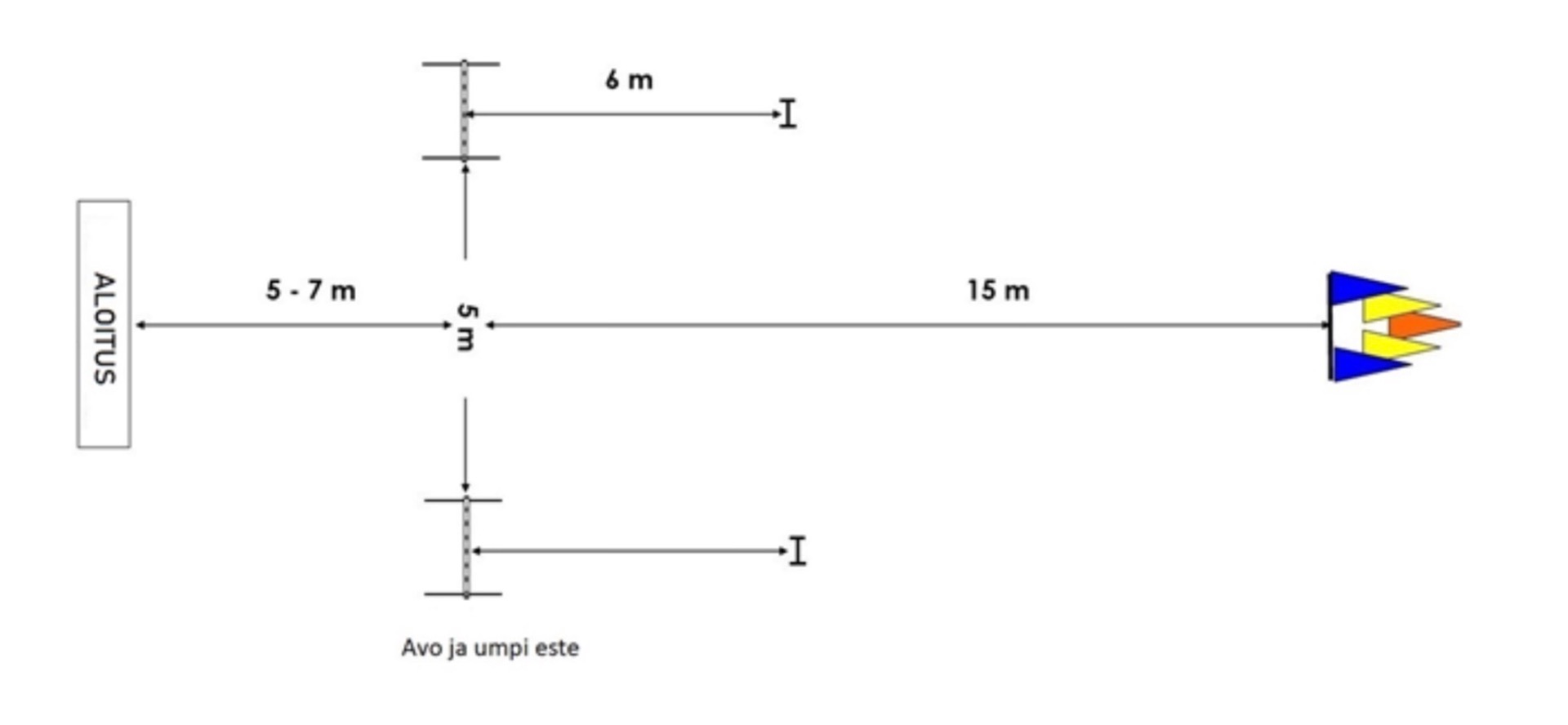 Sitten oli vielä semmoinen harjoitus, jossa emännän pitää osata sijoittaa kapuloita maahan aika mutkikkaaseen kuvioon, johon kuuluu tötteröryhmä ja kaksi estettä. Kapuloiden tulee sijaita silleen sopivasti, että kun minä juosta kiepsautan tötteröryhmän ympäri, niin voin sitten kohti emäntää laukatessani sopivasti napata yhden kapulan matkaan ja hypätä esteen yli paluumatkalla. Tämä on erinomaisen hauska tehtävä. Tosin sitä voisi vielä hieman parannella siten, että myös menomatkalla tötteröille hyppäisin vaikka sen toisen esteen ylitse. Tai sitäkin olen pohtinut, että kun kapuloita ja esteitä kerran on kaksi, niin emäntä voisi samaan aikaan hypätä noutamaan sen toisen kapulan niin saataisiin molemmat kerralla talteen.