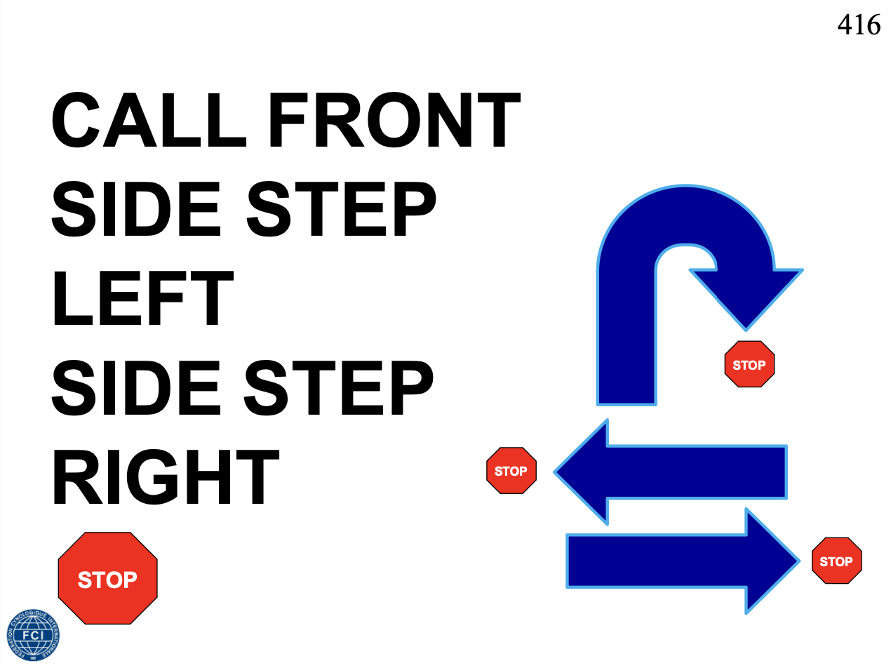 Mikä tutuissa tehtävissä sitten oli muuttunut? No, kuulemma oli niin, että emäntä saa käyttää vaikka koko kehoaan minulle viestimiseen. Siinä heti suunniteltiin, että merkille voisi esimerkiksi lähettää niin, että emäntä seisoo yhdellä jalalla ja viittilöi varpaillaan merkin suuntaan. Ja saman tien otettiin käyttöönkin jo kuvio, jossa siirryn emännän edessä pohkeenväistöä suoraan sivulle, kun emäntä kallistaa päätään ja astuu sivulle.