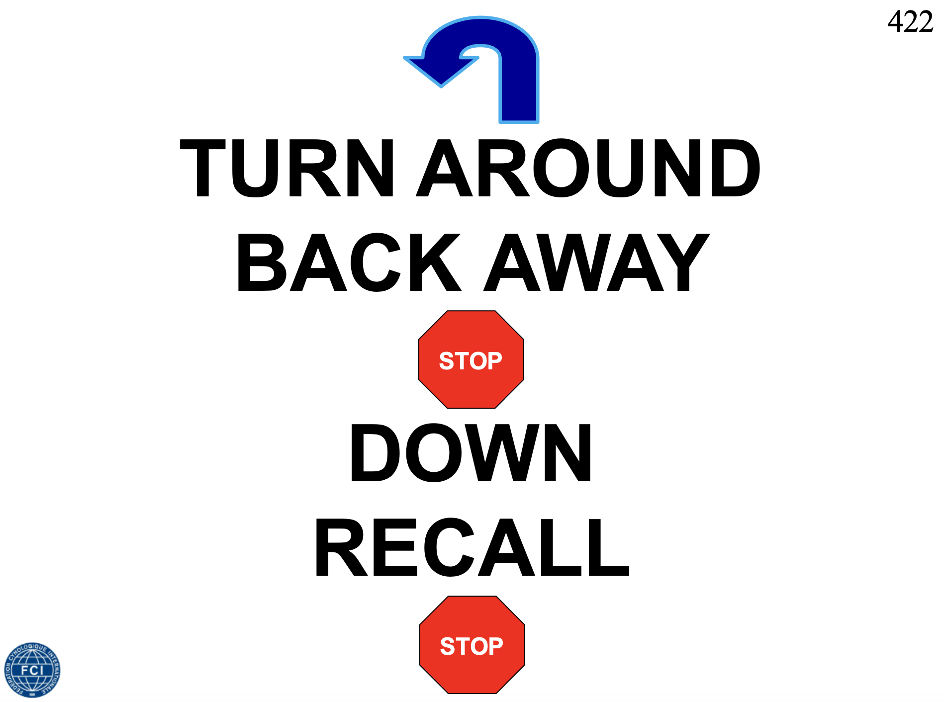 Hauska tehtävä oli myös eräänlainen kauko-ohjaus, jossa jäin paikalleni odottelemaan, kun emäntä siirtyi kauemmas edelleni ja käännähti minua päin antamaan ohjeita sieltä käsin. Emännän viittilöintien ja huikkausten mukaan minä sitten peruuttelin, istahdin, kävin maahan ja nelistin lopuksi emännän vierelle nököttämään.