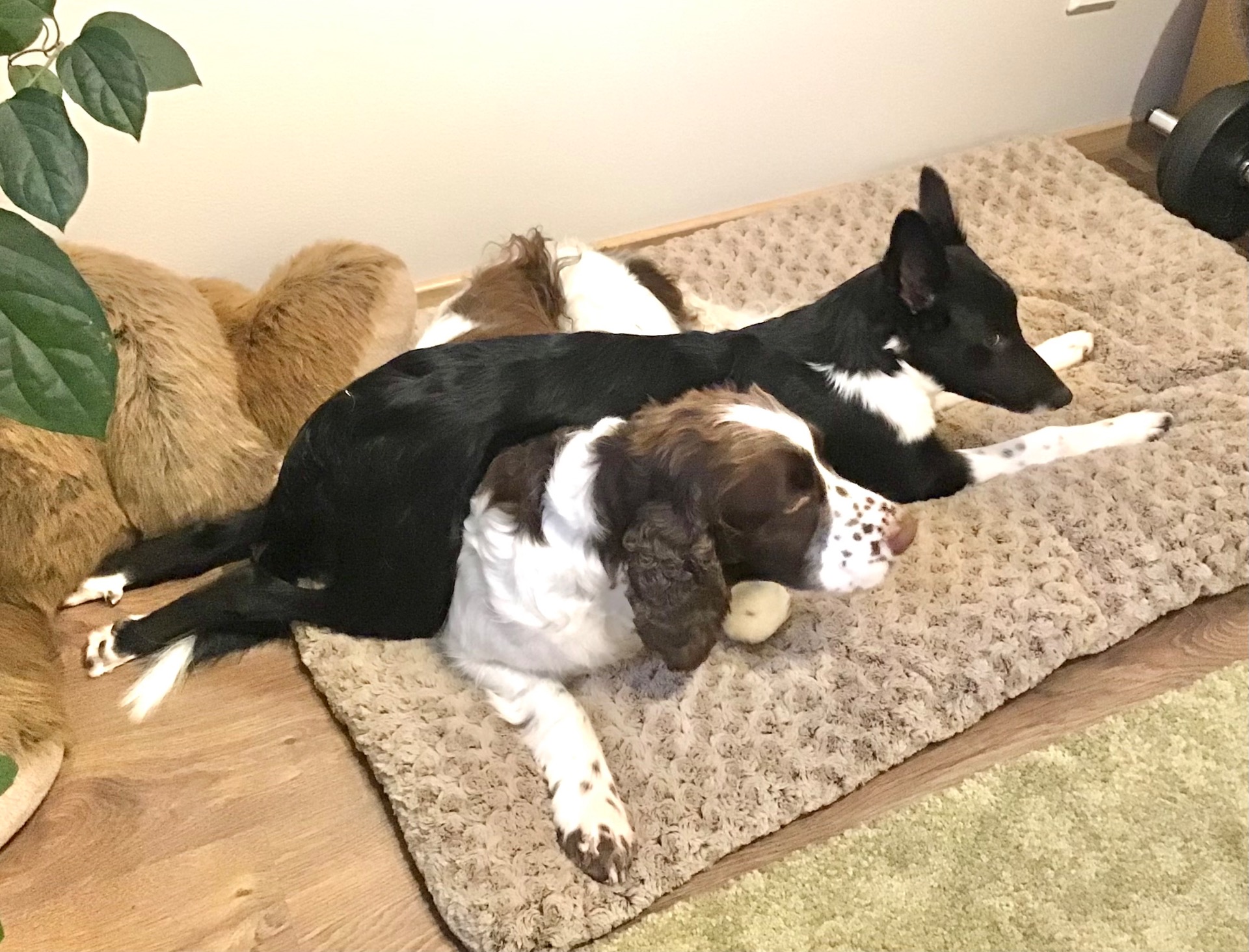 Toinen springerini tuli meille aikuisena. Se osoittautui ihastuttavaksi harrastuskaveriksi ja äärettömän hyväntahtoiseksi koiraksi. Sen erityistaito oli mallioppiminen. Aluksi se ei suostunut noutamaan mitään. Katseltuaan muutaman kerran lenkillä, kun paimenkoirani intohimoisesti etsi ja haki metsästä sinne heittämääni lelua, spanieli päätti ryhtyä noutamaan. Sen jälkeen se palautti niin lelut kuin kapulat niin nopeasti kuin ketteristä kintuista lähti. Samalla tavoin toista koiraani seuraten se oppi hakemaan esineitä vedestä. Tokon hyppynoudon ja kierron se hoksasi, kun itse näytin sille miten tehtävät suoritetaan.